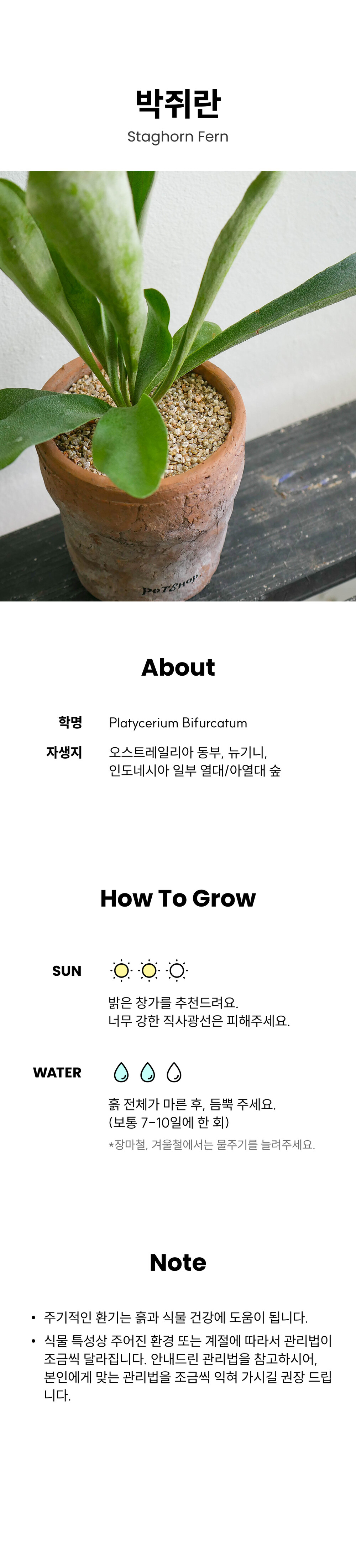 - 식물은 환경과 계절에 따라 관리법이 달라질 수 있습니다. 키우시면서 본인에게 맞는 관리법을 조금씩 익혀 가시길 권장드립니다.