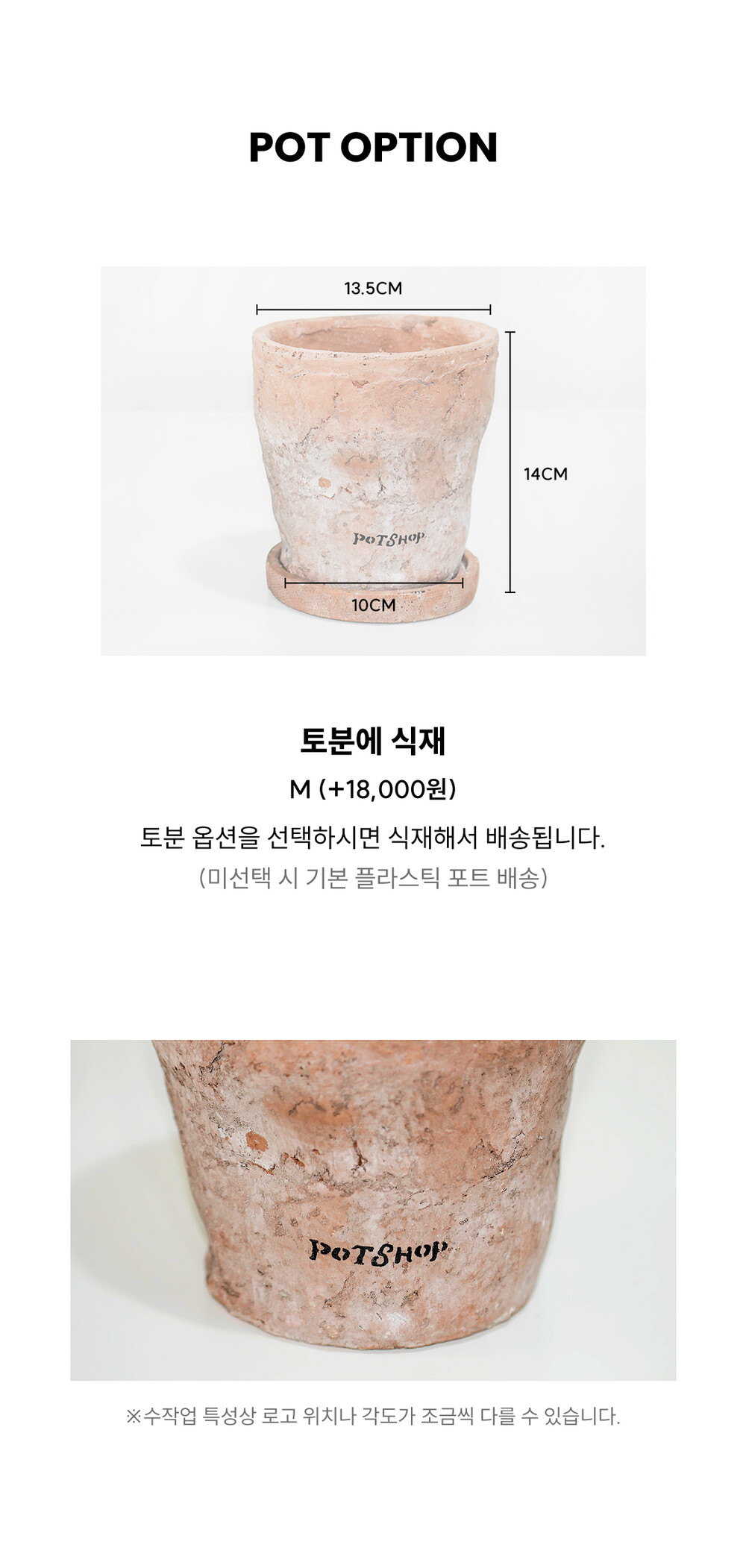 - 도자기 / 토분 : 교환 및 반품 과정에서 포장 미숙으로 인한 파손이 발생할 수 있으므로, 단순 변심으로 인한 교환 및 환불은 불가합니다.