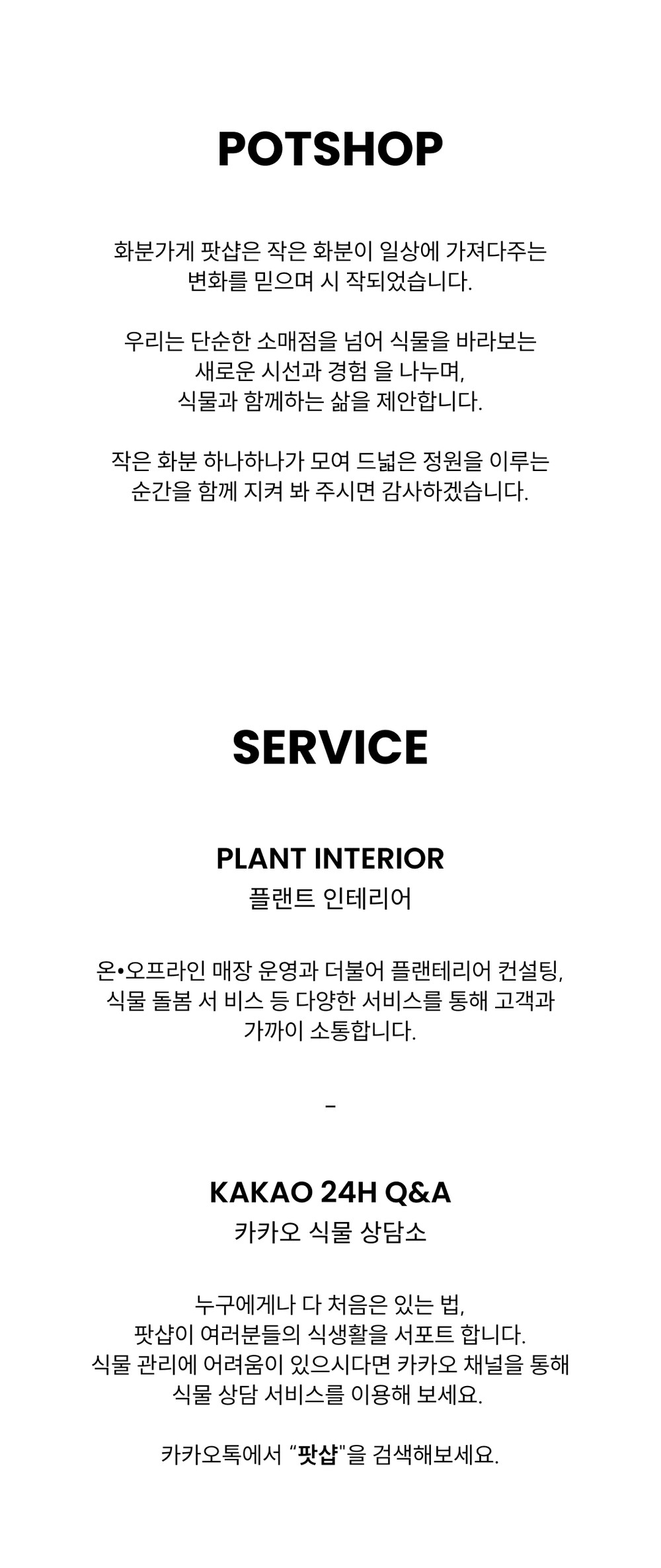 - 도자기 / 토분 : 교환 및 반품 과정에서 포장 미숙으로 인한 파손이 발생할 수 있으므로, 단순 변심으로 인한 교환 및 환불은 불가합니다.
